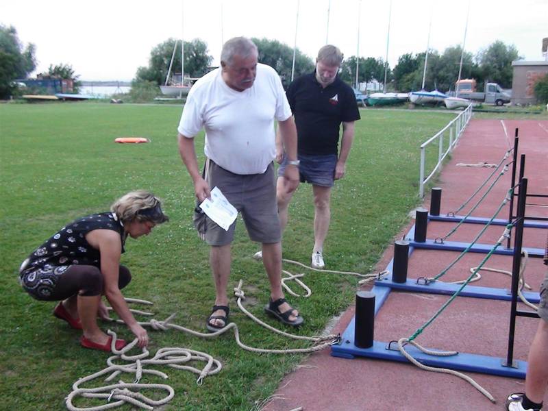 Nach dem alle gesättigt waren, begann der dritte Teil des Abends. Das "klönen" bestand diesmal im Sinne des "Sommerfestes" aus einem Quizz, der Absolvierung der Knotenbahn und dem Wurfleinen-Zielwerfen". Die von Holger aufgestellten 8 Fragen waren insgesamt sehr informativ und unterhaltsam. Zu einigen Fragen waren auch entsprechende Kommentare gefunden.